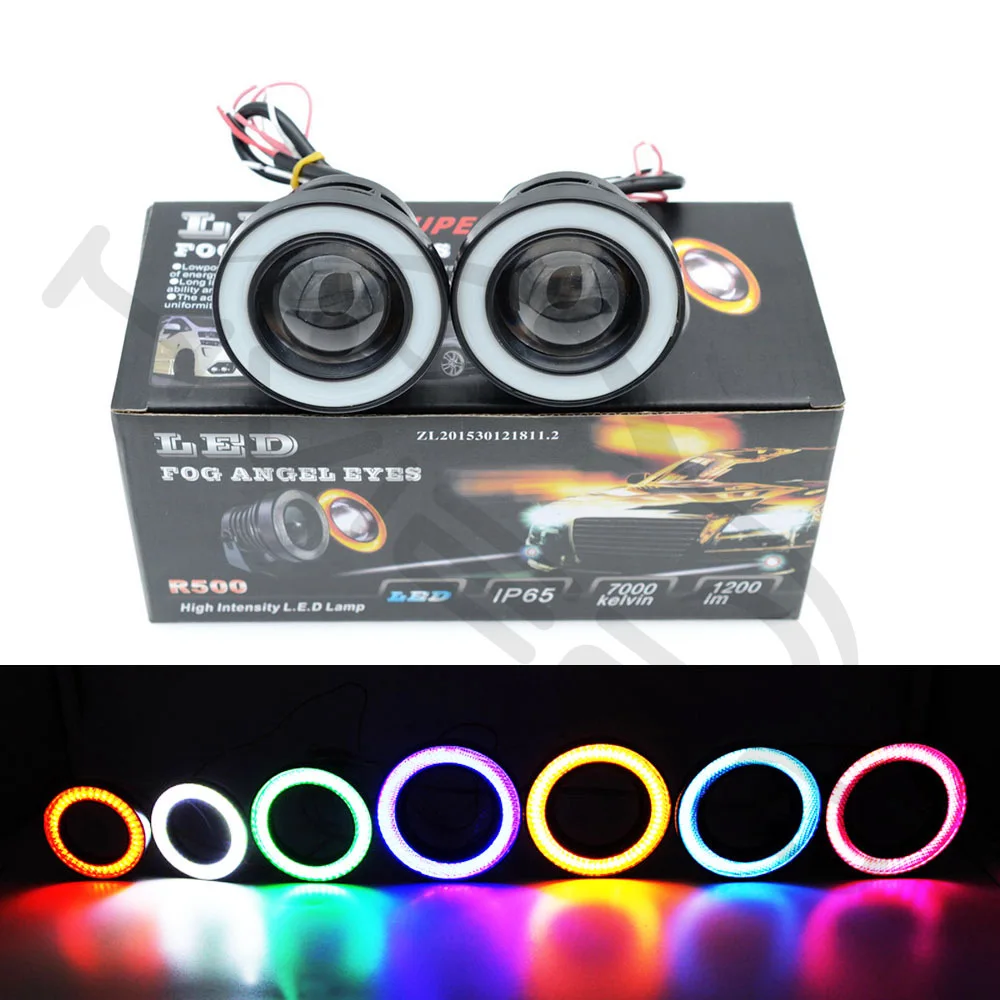 2X 3.5 3.0 2.5 inch COB led headlamp angel eyes hole ring Fog Lights lens Car Headlight Daytime running light 89mm 76mm 64mm only $