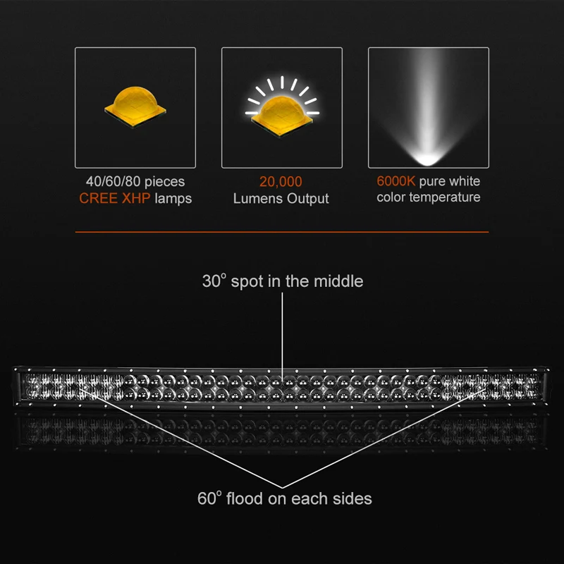 5D 22 32 42 inch 200w 300w 400w Curved Led Light Bar Black Pearl Combo Led Work Light For Tractor OffRoad ATV 4x4 4WD UTV SUV